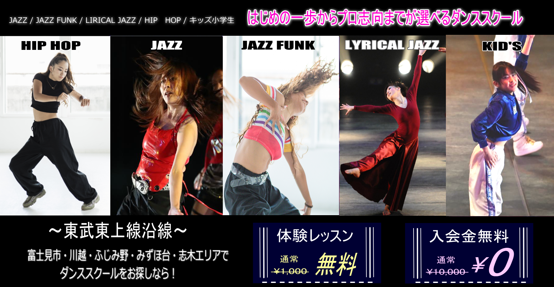 志木市で開業して現在は鶴瀬にてジャズダンス、リリカルジャズ、ヒップホップ、キッズダンスなど、幅広いジャンルのレッスンを展開し、初心者から経験者まで一人ひとりのレベルに合わせた丁寧な指導を行っています。